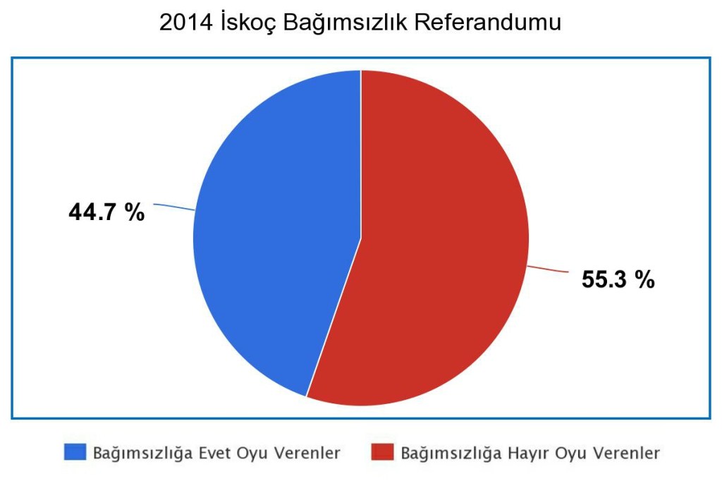Brexit öncesi 2014’te yapılan ve rekor düzeyde katılımla gerçekleştirilen İskoç bağımsızlık referandumunda İskoç toplumunun %45’i bağımsızlığa evet oyu vermişti.